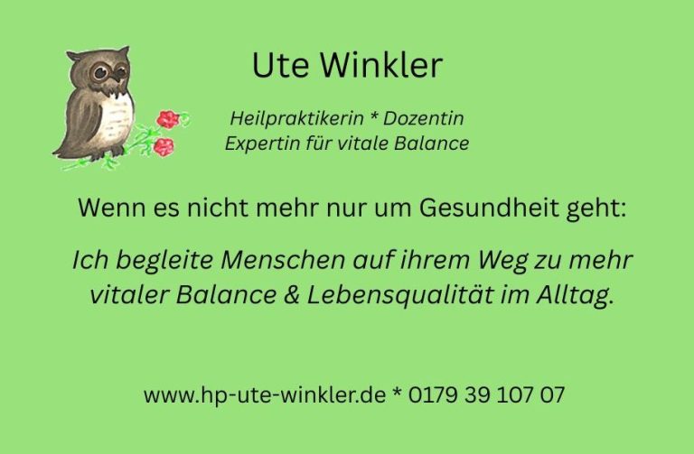 Gern beantworte ich noch offen gebliebene Fragen per Mail (praxis@hp-ute-winkler.de) oder am Telefon unter 0179/3910707.